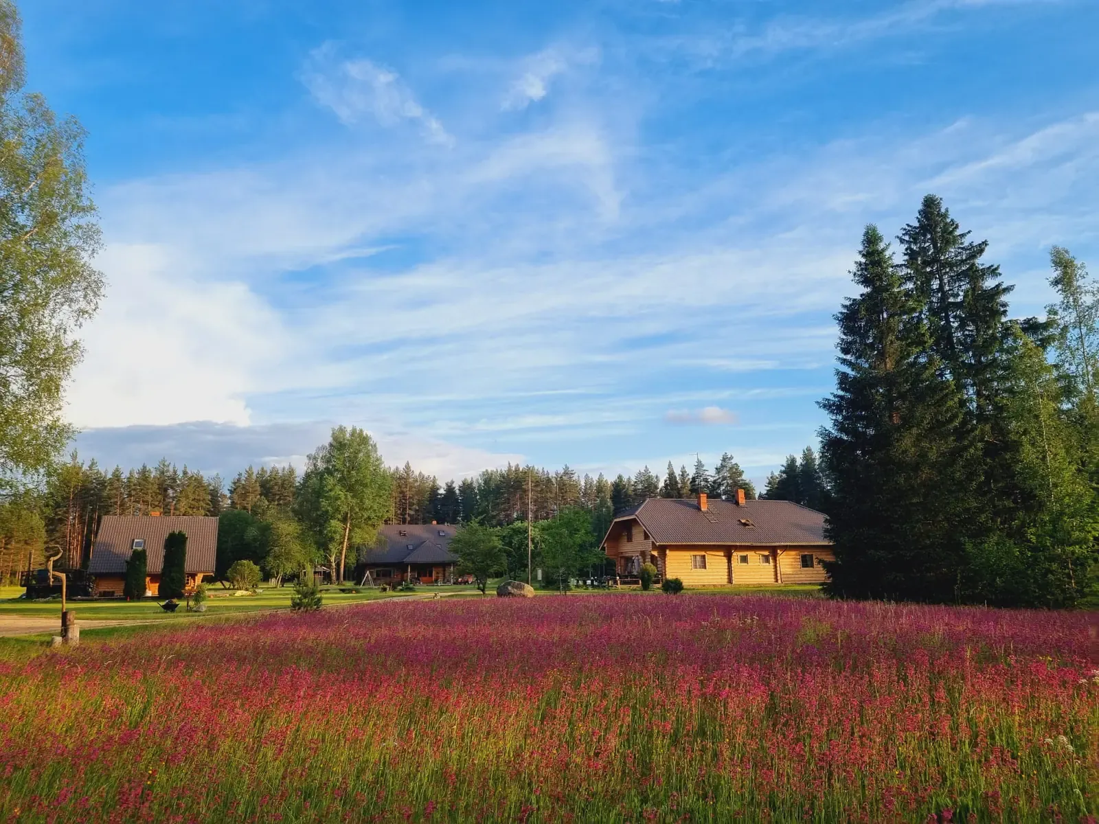 Today the territory includes 4 guest houses for different group sizes: the big house with a banquet hall for up to 100 people, guest house for up to 30 people, sauna house for up to 15 people, and holiday house for accommodation.